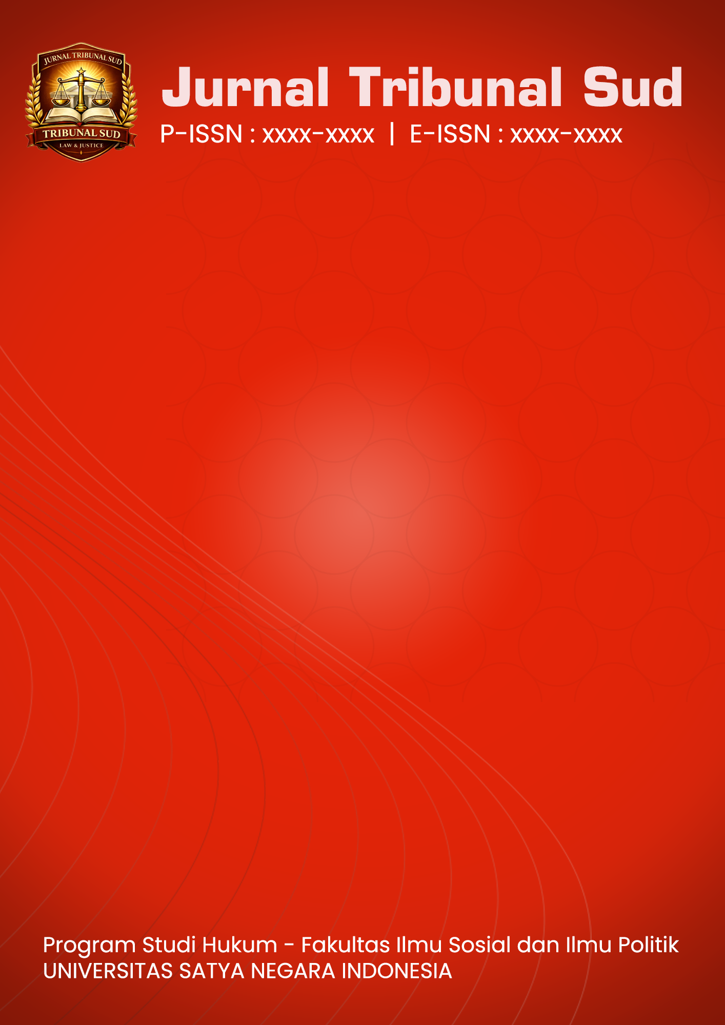 Jurnal Tribunal Sud (JTS) diterbitkan oleh Program Studi Ilmu Hukum, Fakultas Ilmu Sosial dan Ilmu Politik, Universitas Satya Negara Indonesia (FISIP-USNI). JTS didedikasikan sebagai media diskursus yang mengabdi pada kebenaran ilmu pengetahuan hukum, dalam menanggapi berbagai perubahan dan isu ilmu hukum. Tribunal sendiri berarti suatu tempat mengadili, sedangkan Sud berarti keadilan. Dengan demikian, JTS menjadi wadah “mengadili” dalam diskursus yang terarah pada salah satu tujuan hukum itu sendiri yaitu, keadilan. JTS hadir dua kali dalam setahun, Mei dan November.
